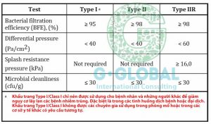 Các tiêu chuẩn kỹ thuật đã qua thử nghiệm của khẩu trang công ty Hongminhpsco